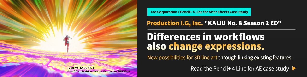 Furthermore, it becomes easy to perform tasks that are time-consuming to execute in 3D software, such as animating parameters or changing line color or thickness for each cut. By being able to make fine adjustments to lines in the compositing process, you can now create even higher-quality images.
