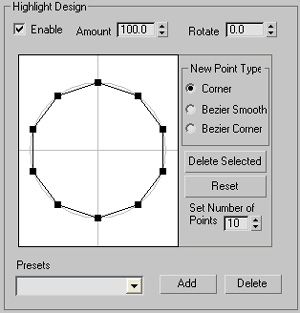 Go to [Pencil+ 2 Material] / [Basic Parameters] rollout / [Advanced Settings] / [Highlight Design] and check the [Enable] check box.