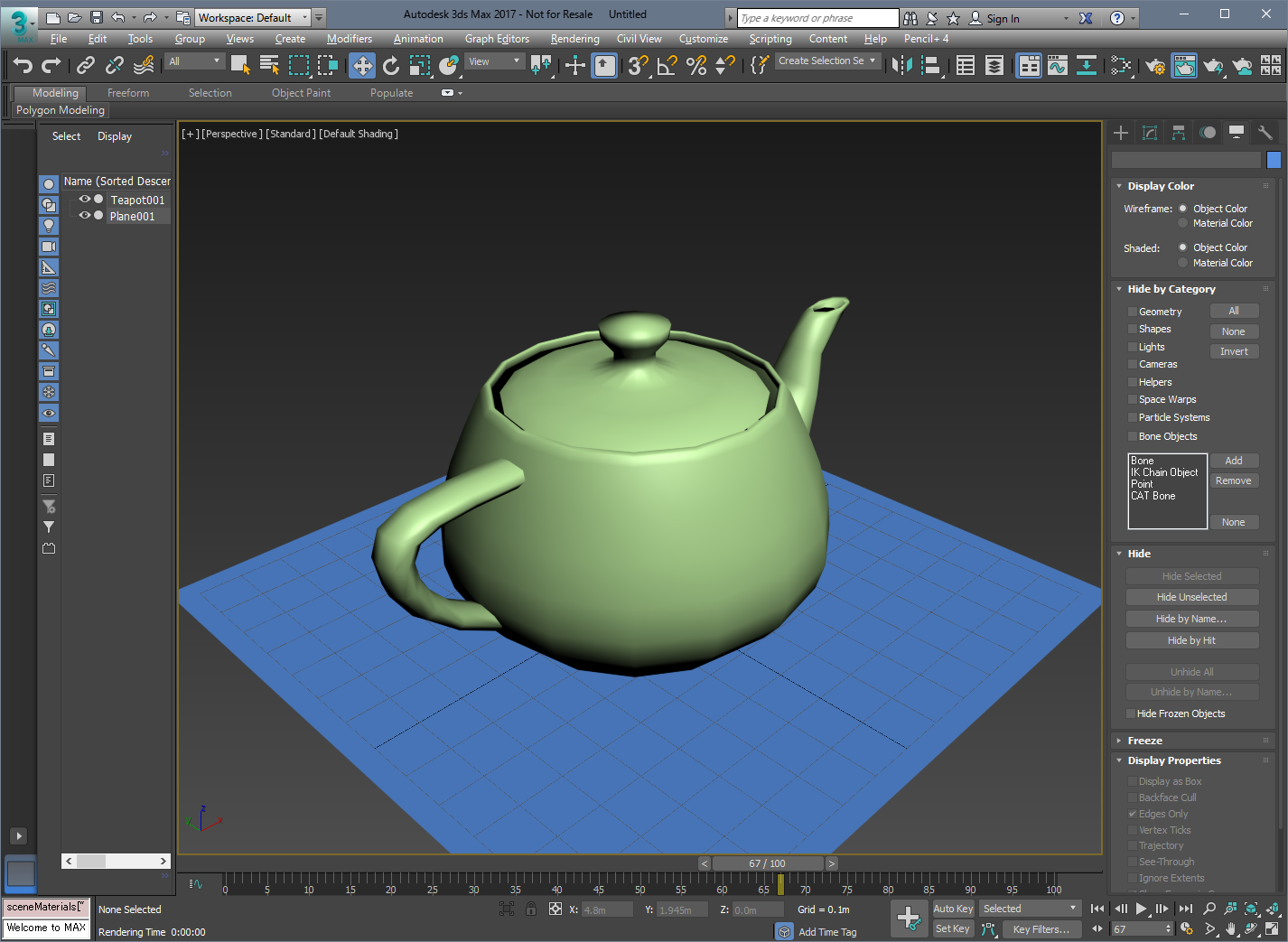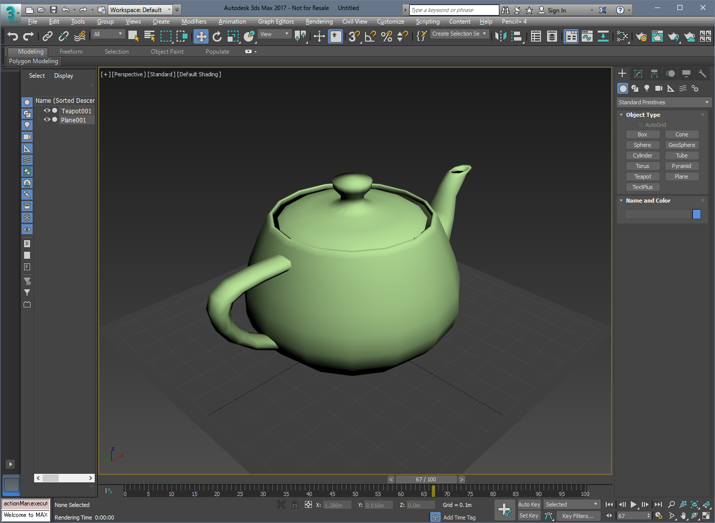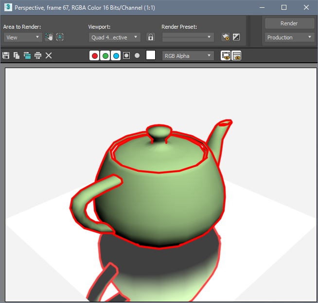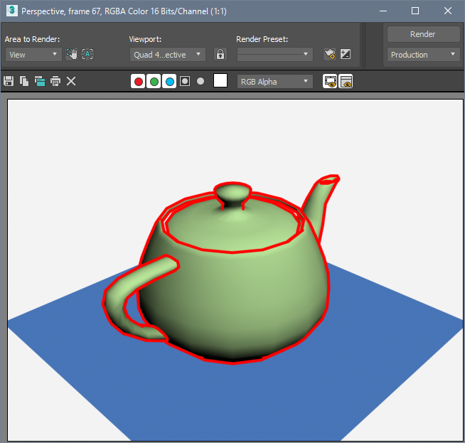 In this example, we create a teapot and plane objects and set a Pencil+ 4 Line to the teapot.