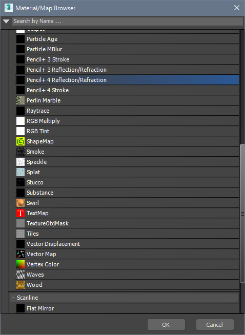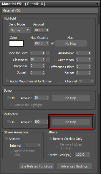Click the map button in the Reflection area of the Pencil+ 4 Material to show the [Material/Map Browser]. Select [Pencil+ 4 Reflection/Refraction] and click [OK].