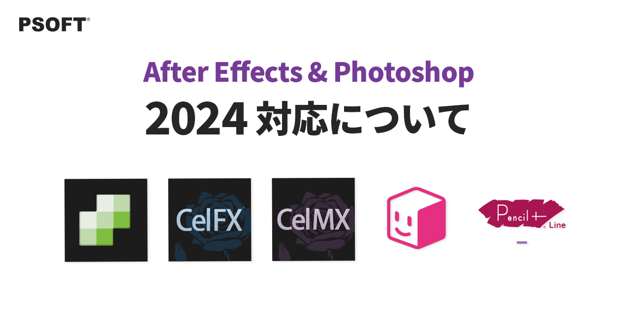 以下のPSOFTプラグイン製品は、Adobe社 After Effects 2024 / Photoshop 2024 において正常に動作することを確認いたしました。