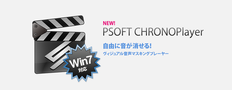 PSOFT CHRONOPlayer(クロノプレーヤー)は、動画や音声から特定の音を消したり、「再生スピード」や「音程」を自在に変えることができるWindows 7/Vista用 のメディアプレーヤーソフトです。