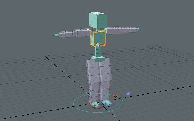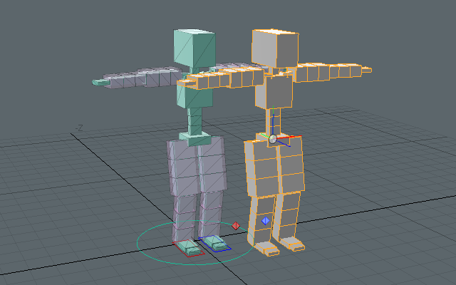 シーンにウェイトメッシュが生成されました。ウェイトマップを設定したいメッシュアイテムを覆うように、ウェイトメッシュを編集してください。 ウェイトメッシュは全てのスケルトンアイテムをメッシュ化しますが、ウェイトマップが必要のないメッシュは削除しても大丈夫です。