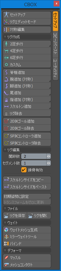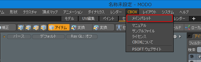 CBOXの機能を使用するには[メインパレット]を使用します。