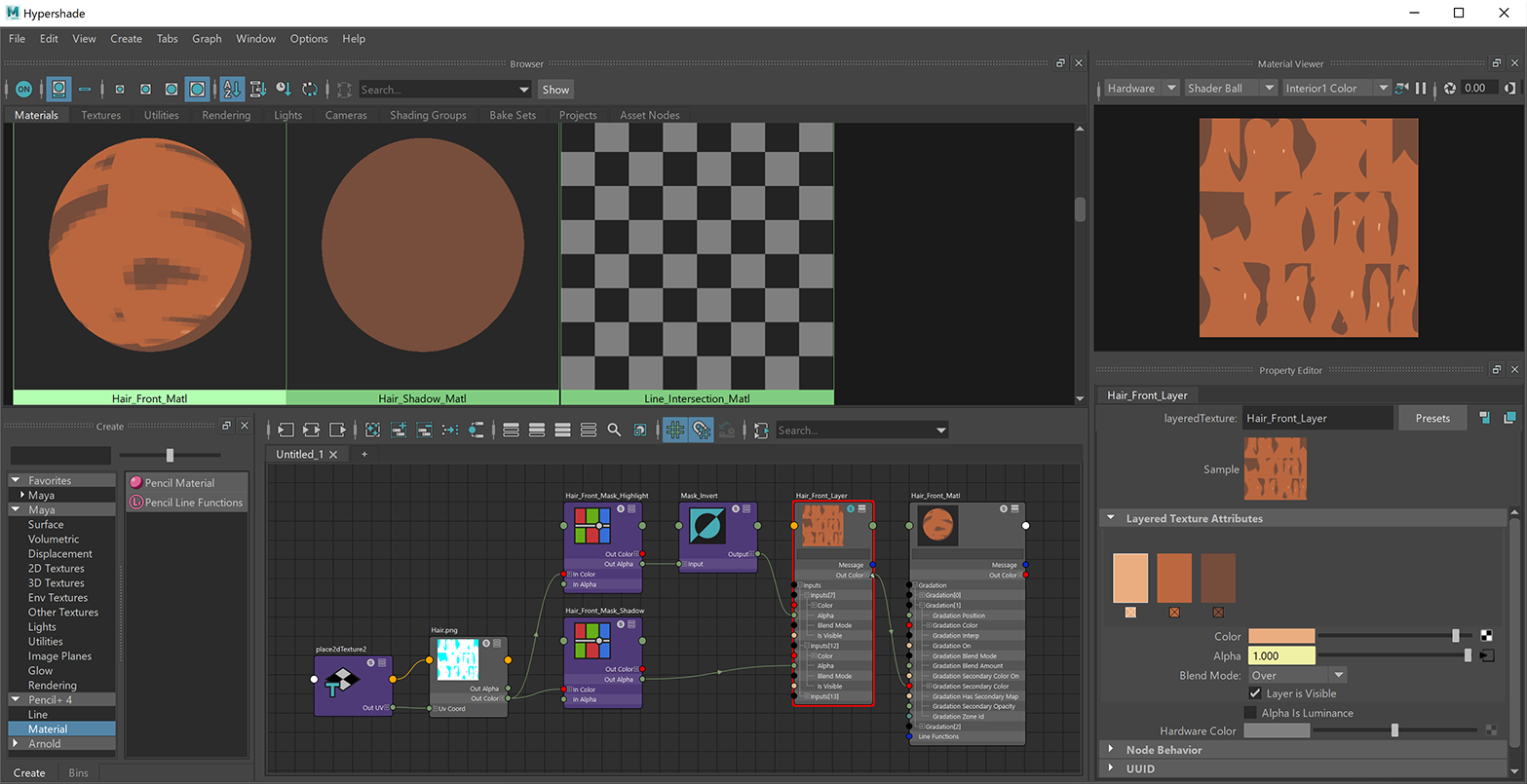 - ハイパーシェードで[PencilMaterial]を選択します。