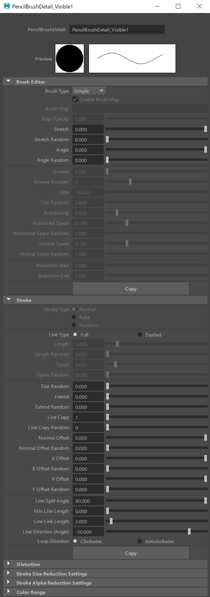 PencilBrushDetail ノードは、より詳細なブラシの形状やストロークに関する設定を行います。アナログの画材で例えると線を引く勢いや筆圧のような、線のタッチに関する設定にあたります。