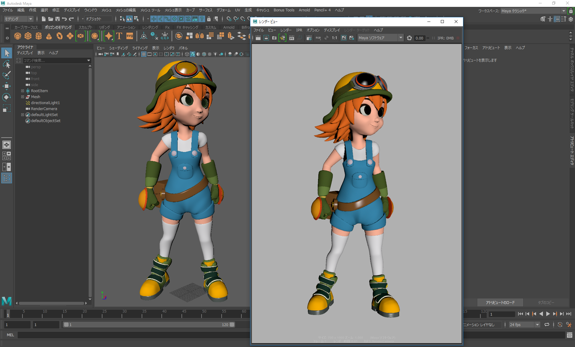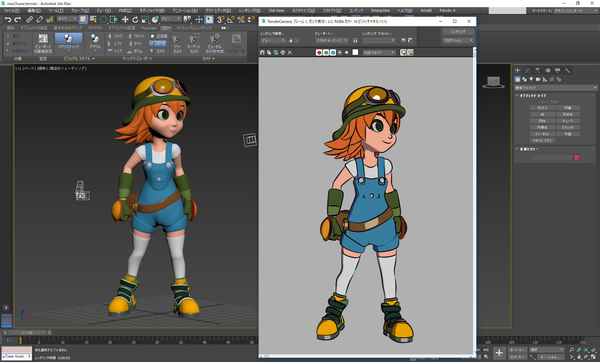 レンダリングすると3ds Maxから出力したPencil+ 4の設定が確認できます。