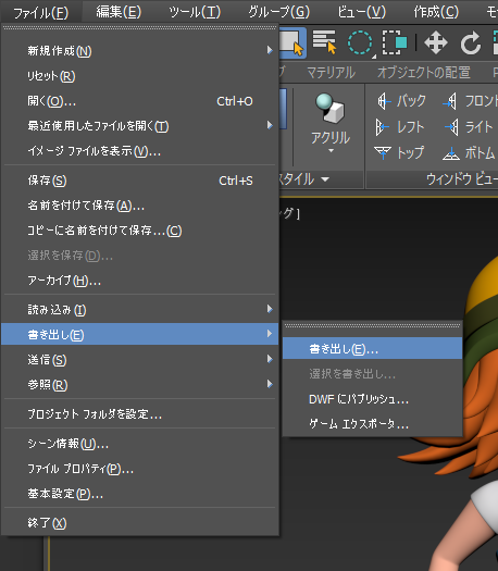 Mayaへ読み込むシーンをFBX形式で書き出します。