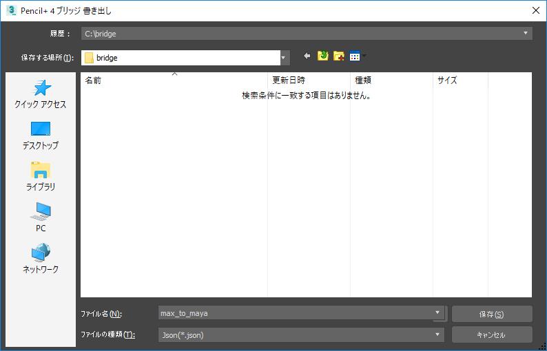 「Pencil+ 4 ブリッジ 書き出し」ウィンドウが開きます。