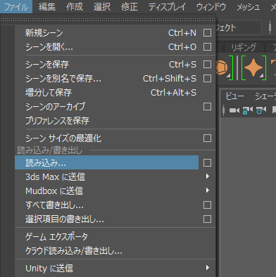 3ds Maxから書き出したFBXファイルをMayaに読み込みます。