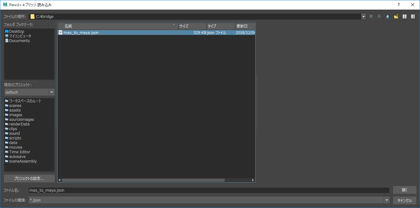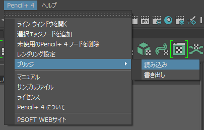 Pencil+ 4 の設定を Pencil+ 4 Bridge for Maya で読み込みます。