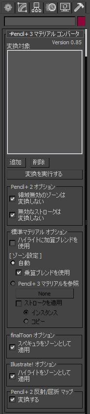 3 マテリアル コンバータ] ロールアウトが表示されます。