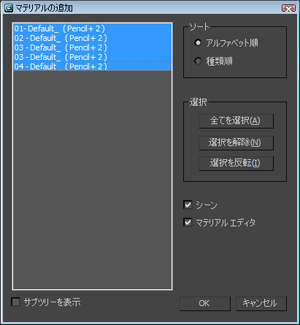ボタンをクリックし[マテリアルの追加]ダイアログを表示します。