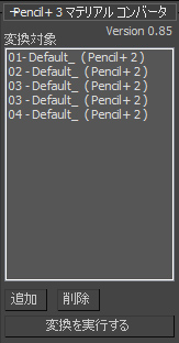 マテリアル変換対象リストに追加したマテリアルが表示されます。