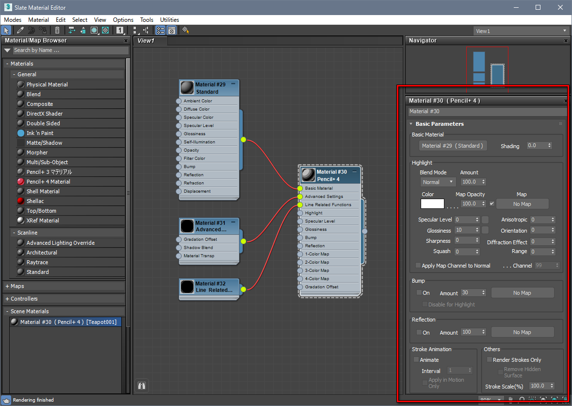 - スレートマテリアルエディタ の[マテリアル パラメータ エディタ]にPencil+ 4 マテリアル ノードのパラメータを表示してください。