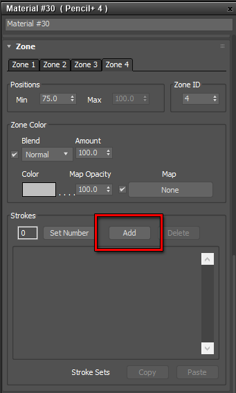 ゾーン階層で任意のゾーンタブをクリックし、ストローク領域の[追加]ボタンをクリックしてください。ストローク リストにPencil+ 4 ストローク マップが追加されます。
