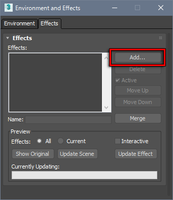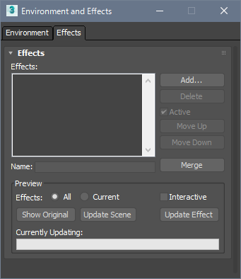 [8]キーを押して[環境と効果]ウィンドウを開いて、効果タブを表示してください。