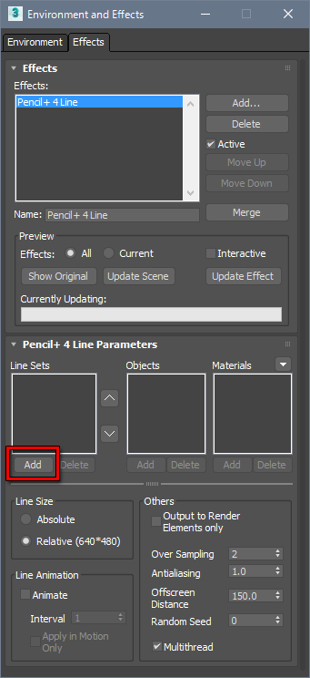 [追加]ボタンをクリックして、[効果を追加]ダイアログから[Pencil+ 4 ライン]を選択して[OK]をクリックしてください。