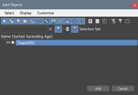 リストからティーポット オブジェクトを選択して[追加]ボタンをクリックします。