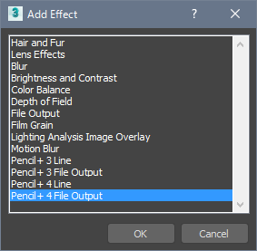 - [環境と効果]ウィンドウで[Pencil+ 4 ファイル出力]を追加します。