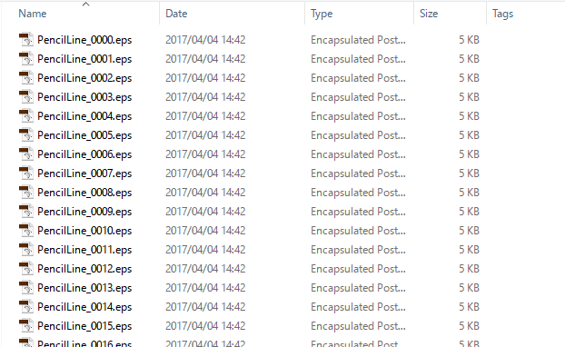EPS形式では1つのファイルに全てのPencil+ 4 ラインを保存します。