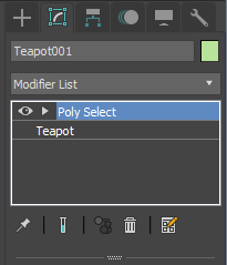 オブジェクトを選択した状態で「修正 パネル / モディファイヤリスト」から[ポリゴンを選択]をクリックしてください。つぎに[頂点][エッジ][ポリゴン]のいずれかを使用してラインを描画したいポリゴンを選択してください。