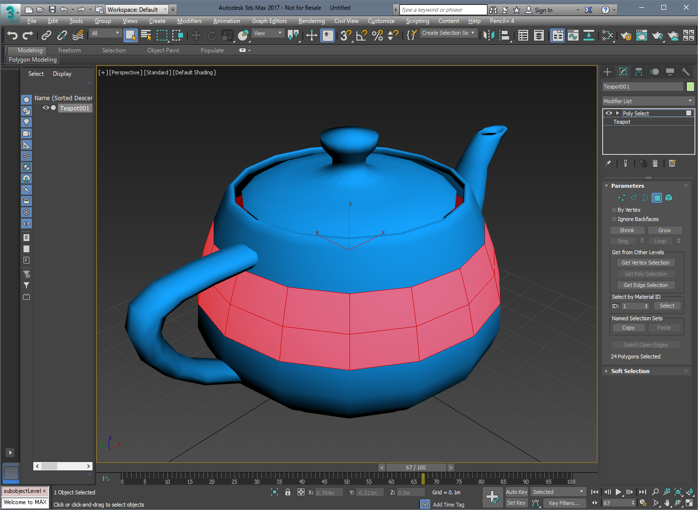- [ポリゴンを選択]モディファイヤを追加してポリゴンを選択します。