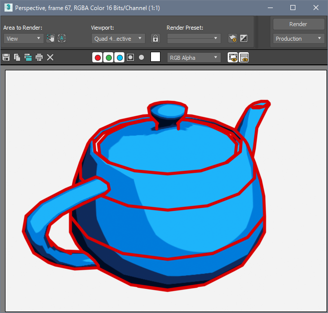 - [F9]キーを押してレンダリングします。Pencil+ 4 ラインとして選択したポリゴンの境界が描画されました。