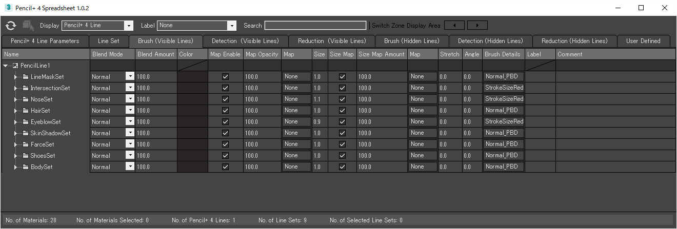 今回は [ブラシ設定][ブラシ詳細設定]をインスタンス化する方法を紹介しましたが、Pencil+ Spreadsheetを使うと複数のラインセットのパラメータをまとめて編集できます。