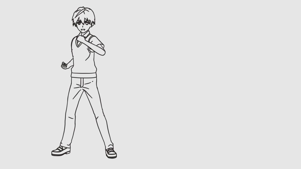 カメラからの距離に応じてラインの太さを変化させる方法を解説しましたが、手描きのアニメでラインを距離に応じて細く描くケースは少ないです。手描きの場合はラインを細くするのではなく、キャラクターの距離に応じてラインを省略します。