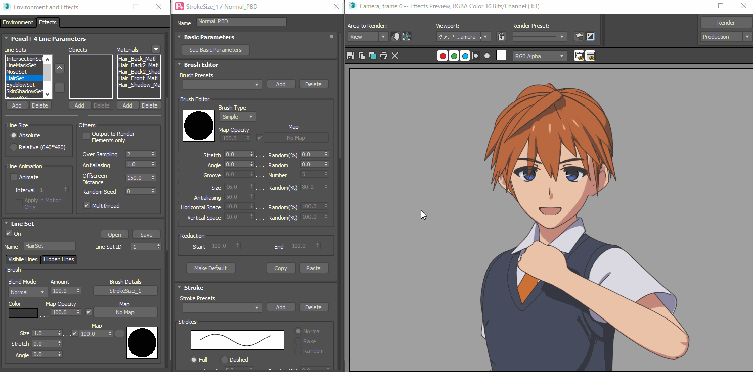 漫画のような繊細な表現を全て3ds Max内で設定できればよいのですが、残念ながら不向きな処理もあります。3D ソフトのレンダラーは機能ごとに計算の順番やアクセスできる情報の範囲が決められているため、計算順に逆らった機能は実現できません。