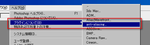 - [ヘルプ] メニューから [プラグインについて] / [anti-aliasing] を選択します。