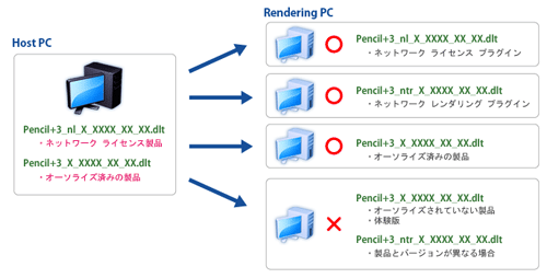 ネットワークレンダリングの方法はサーバPCに、 ネットワークレンダリング専用のプラグインをインストールする必要があります。 詳しくは製品マニュアルのネットワークレンダリング項をご参照ください。- ホストになるPCはオーソライズ 又はライセンス取得をしていただく必要があります。