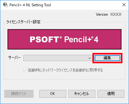 - [編集]ボタンをクリックして「ライセンスサーバー設定」ダイアログを開きます。
