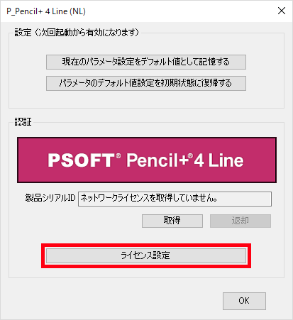 - [ポート]にはPSOFT Network License Managerで設定した[Port No.]と同じ物を入力します。